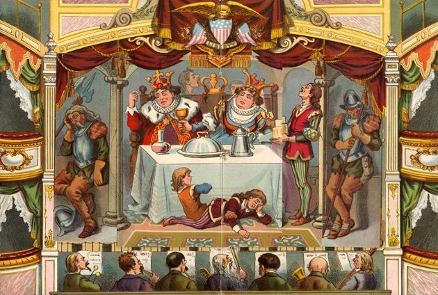 La Biblioteca Baldwin de Literatura Histórica Infantil en el Departamento de Colecciones Especiales y Áreas Especiales, de las Bibliotecas George A. Smathers de la Universidad de Florida, nos presenta fotografías del maravilloso libro juguete del cuento de la Bella Durmiente presentado como una obra de teatro (incluso muestra la orquesta y los balcones para el público). Publicado por McLoughlin Bros en Nueva York en 1870