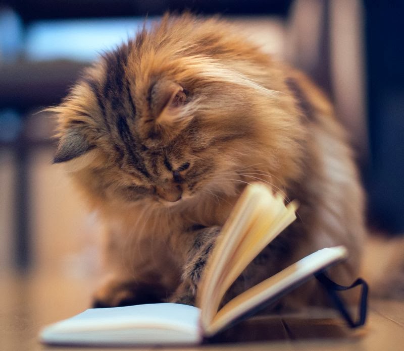 El gato hojea el libro y no entiende qué tiene que ver la caja con el gato de Schrödinger. Tal vez sí prueba ahora con un libro que tenga únicamente ilustraciones.