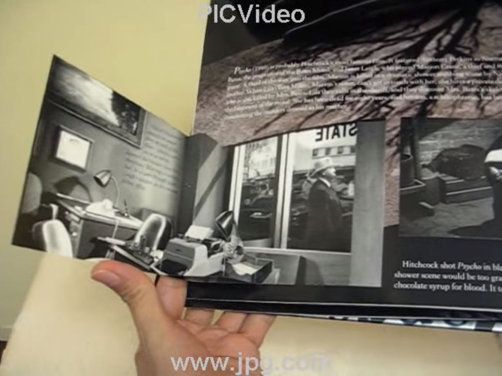 Con ingeniería de papel por Kees Moerbeek y editado por Simon & Schuster en el año 2006, del libro brotan imágenes tridimensionales de las escenas emblemáticas de las películas de ese genio del suspenso que fue Alfred Hitchcock.