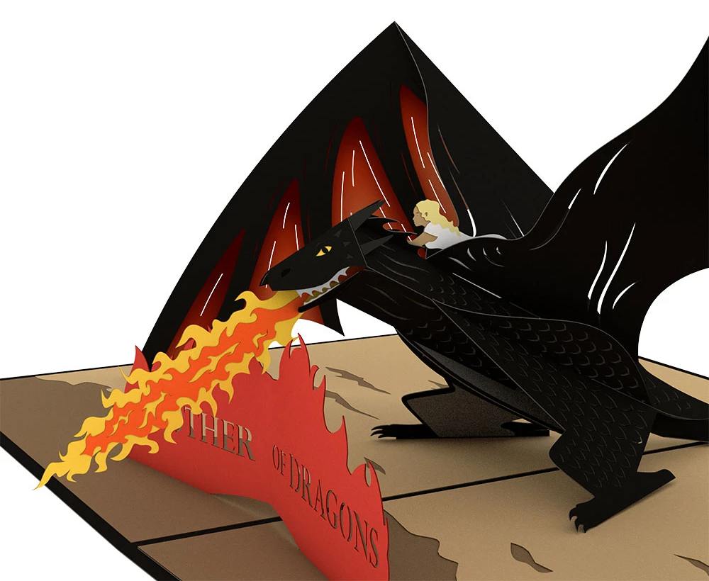 3 tarjetas pop-up de Game of Thrones Dragón, Copa y Cuervo